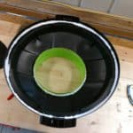 I removed the separator portion from the other 5-gallon bucket and traced around it on the lid of a 32-gallon trash can. I used my rotary tool to cut the hole a little on the inside of the traced line. You can always cut a hole bigger…you can’t cut it smaller. After a few rounds of testing, trimming, and re-fitting, I got the separator to fit.
